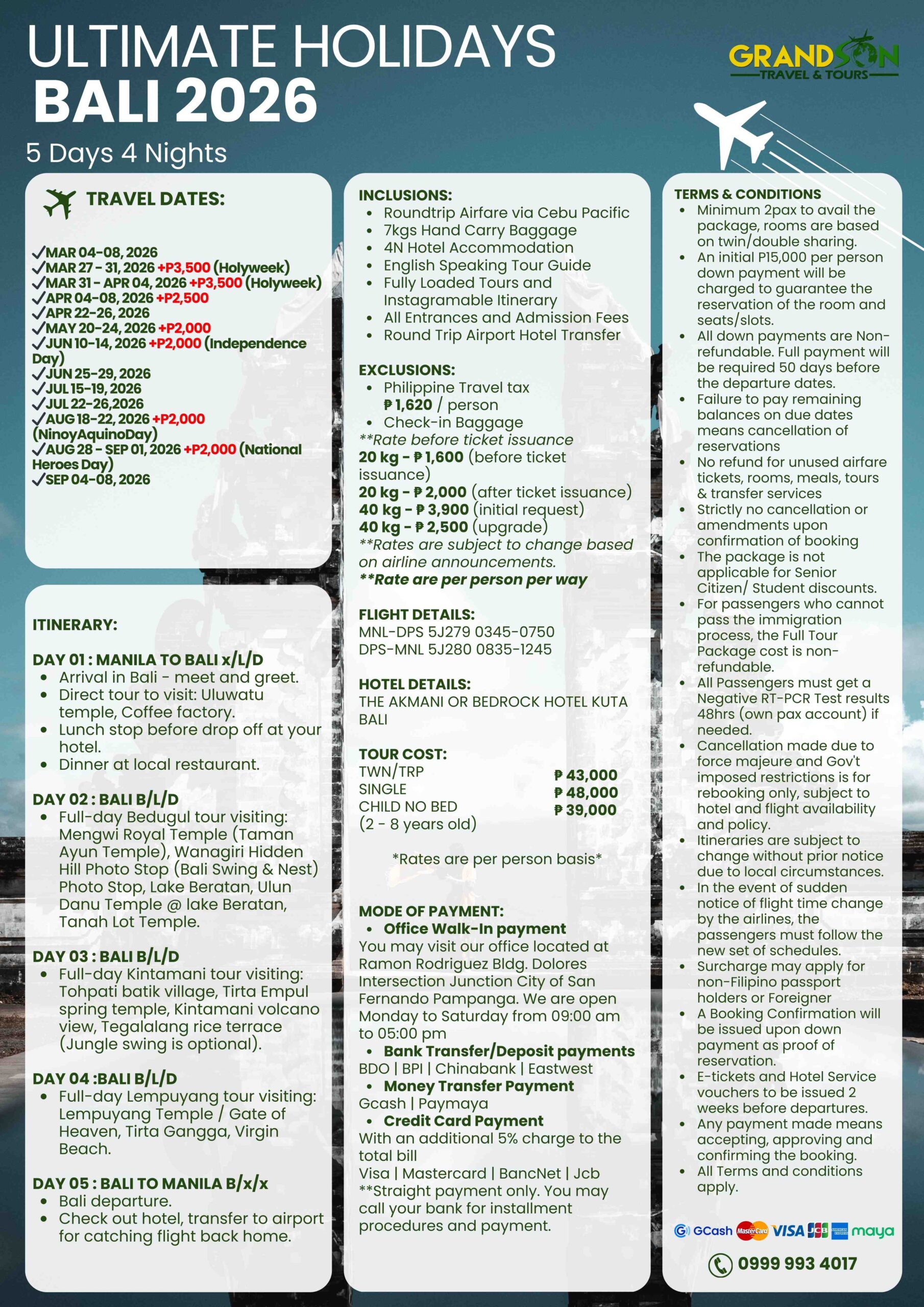 - Ph Travel Tax ₱ 1,620 / person