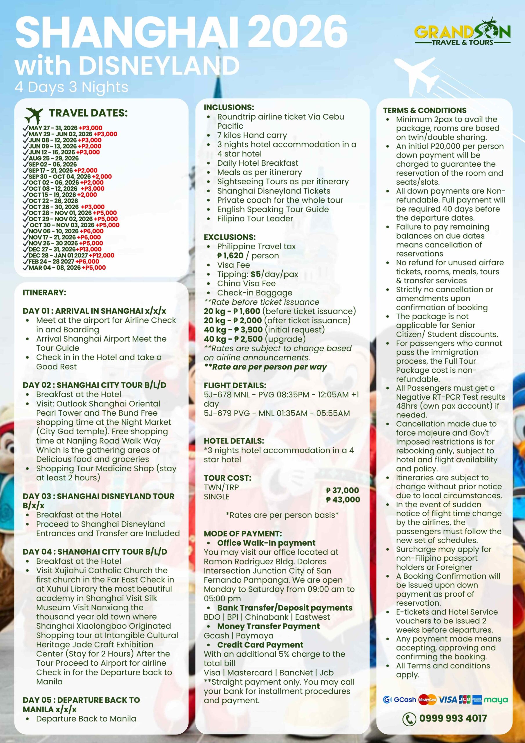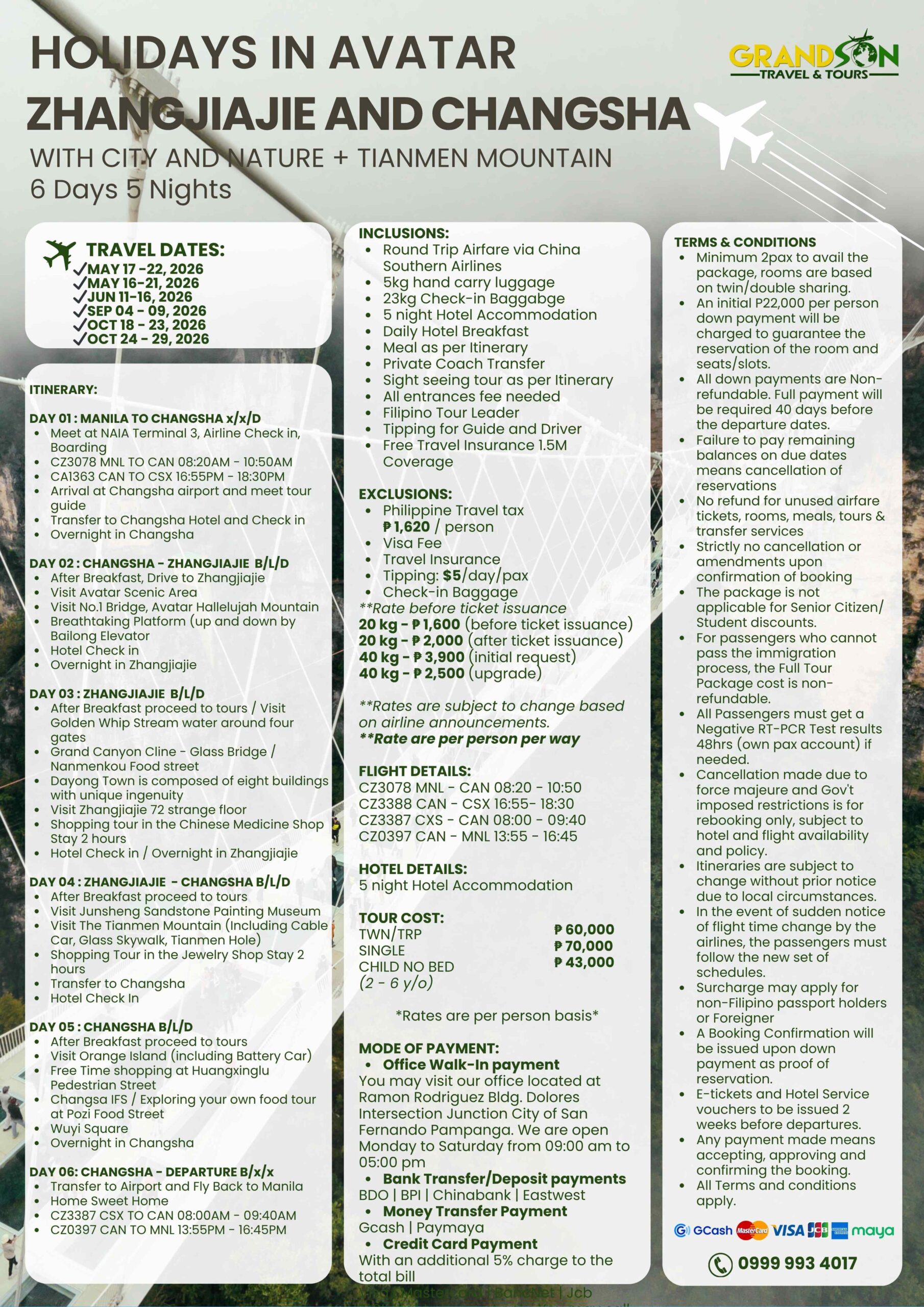 - Grandson Travel and Tours has the right to make the changes in the itinerary given.
