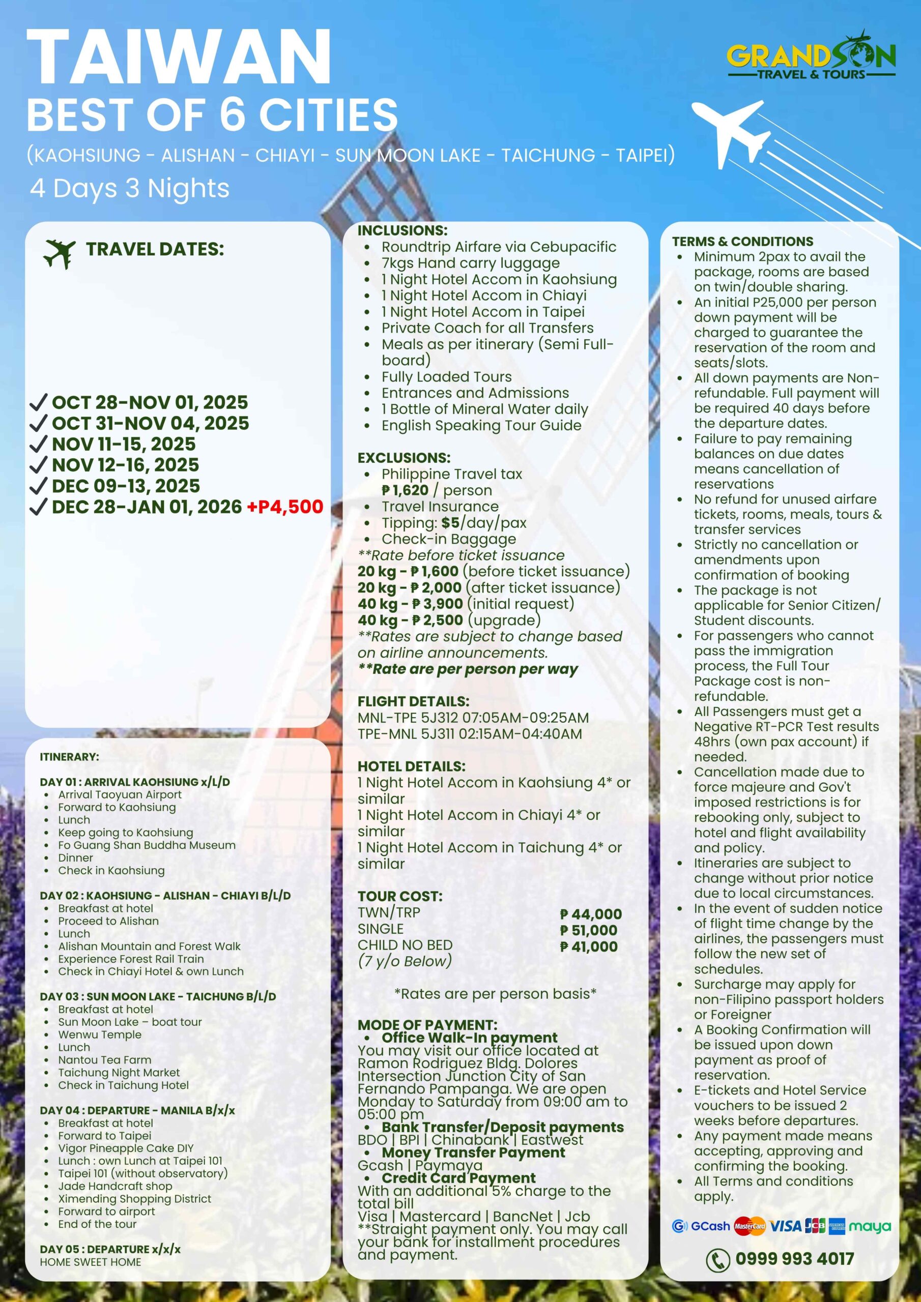 KAOHSIUNG – ALISHAN – CHIAYI – SUN MOON LAKE – TAICHUNG – TAIPEI