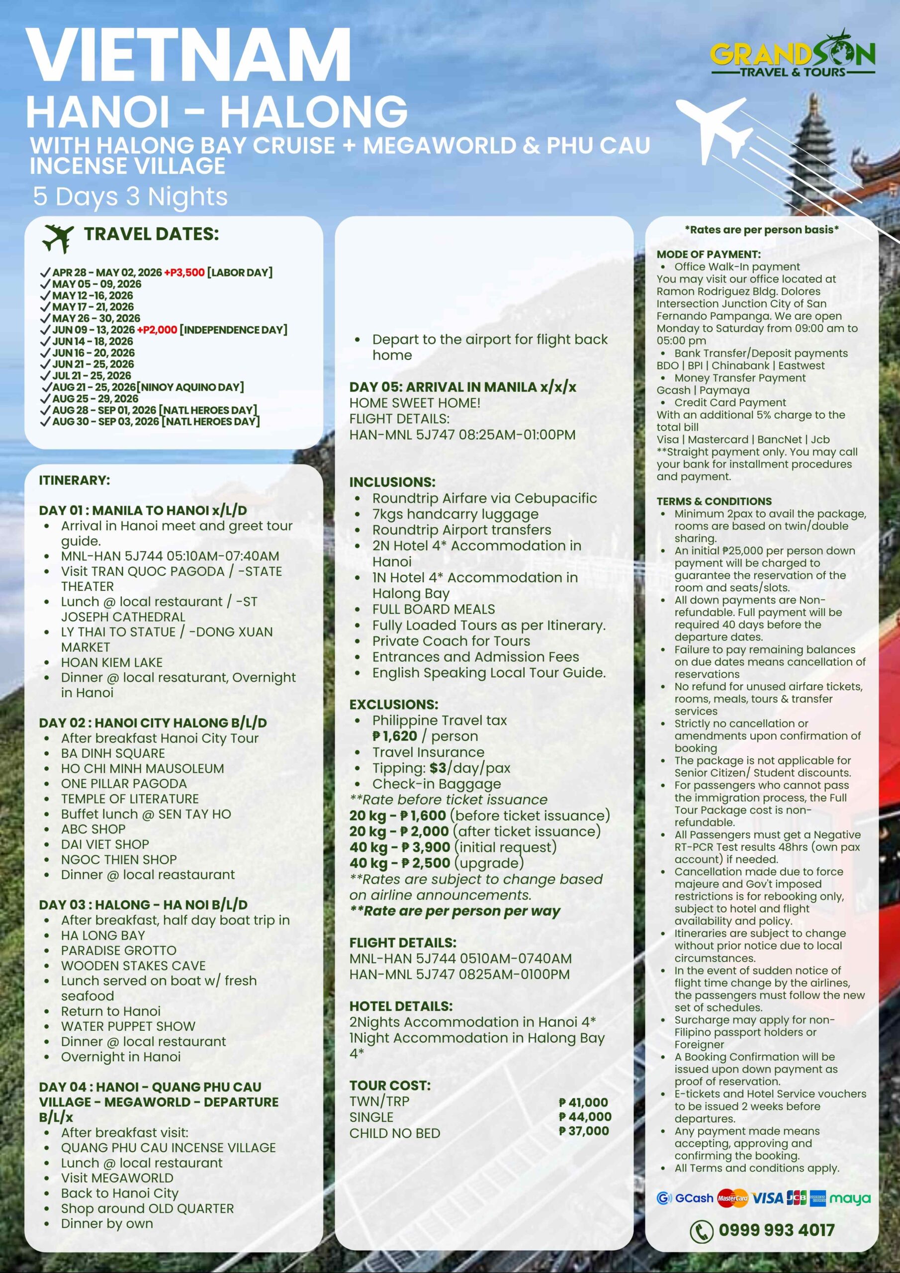 HANOI – HALONG with HALONG BAY CRUISE + MEGAWORLD & PHU CAU INCENSE VILLAGE 2026